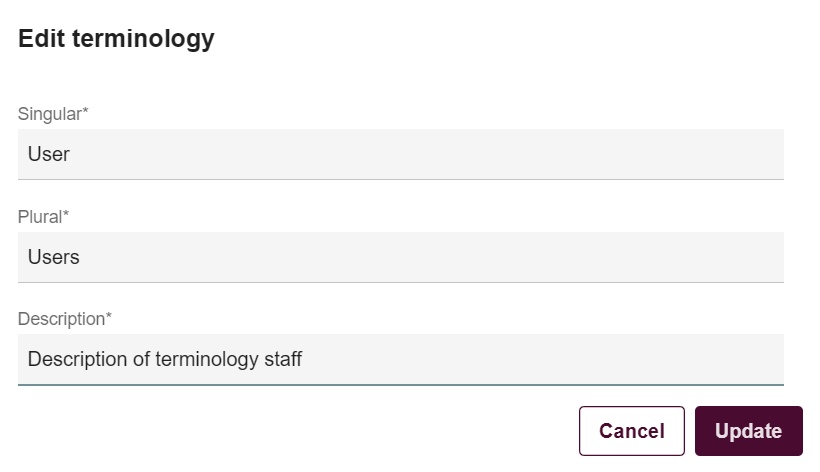 Click on Update to apply the new terminology across Gembaa and repeat the process for other entities as needed.