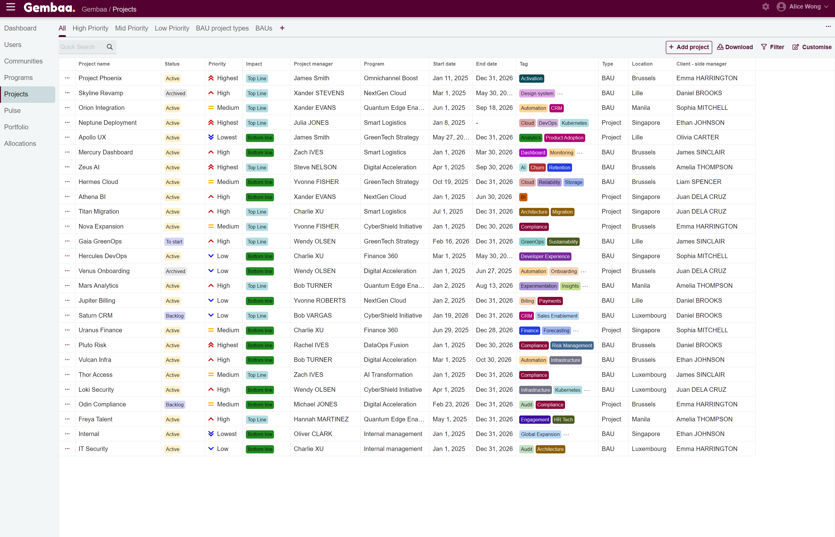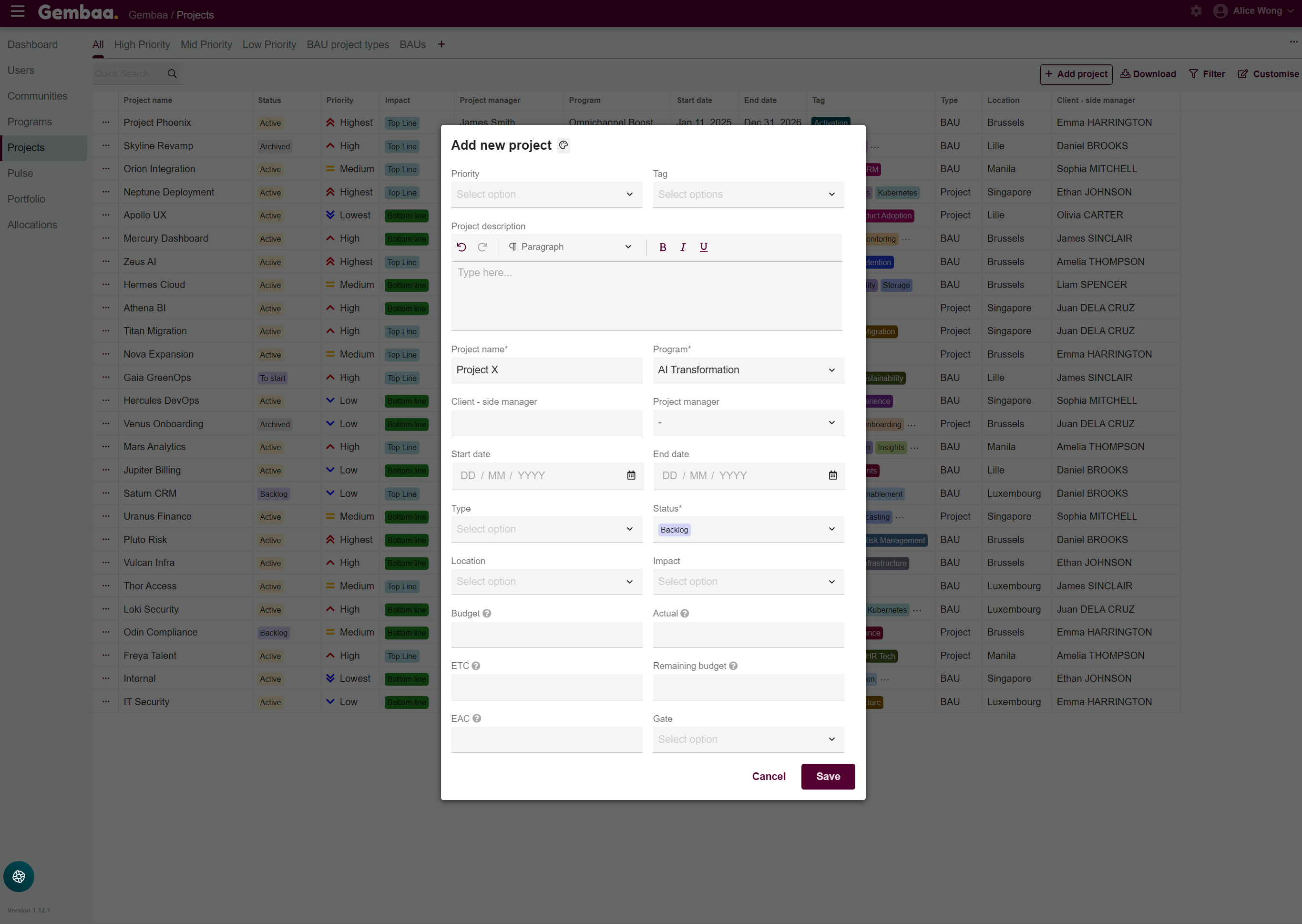 - Program - Relevant program the Project is associated with, e.g., AI Transformation
