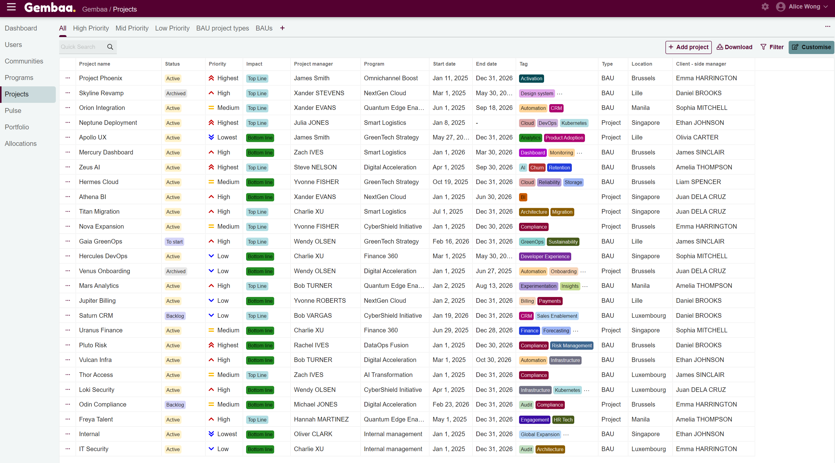- PMOs, Stakeholders, and Managers monitoring project status and details