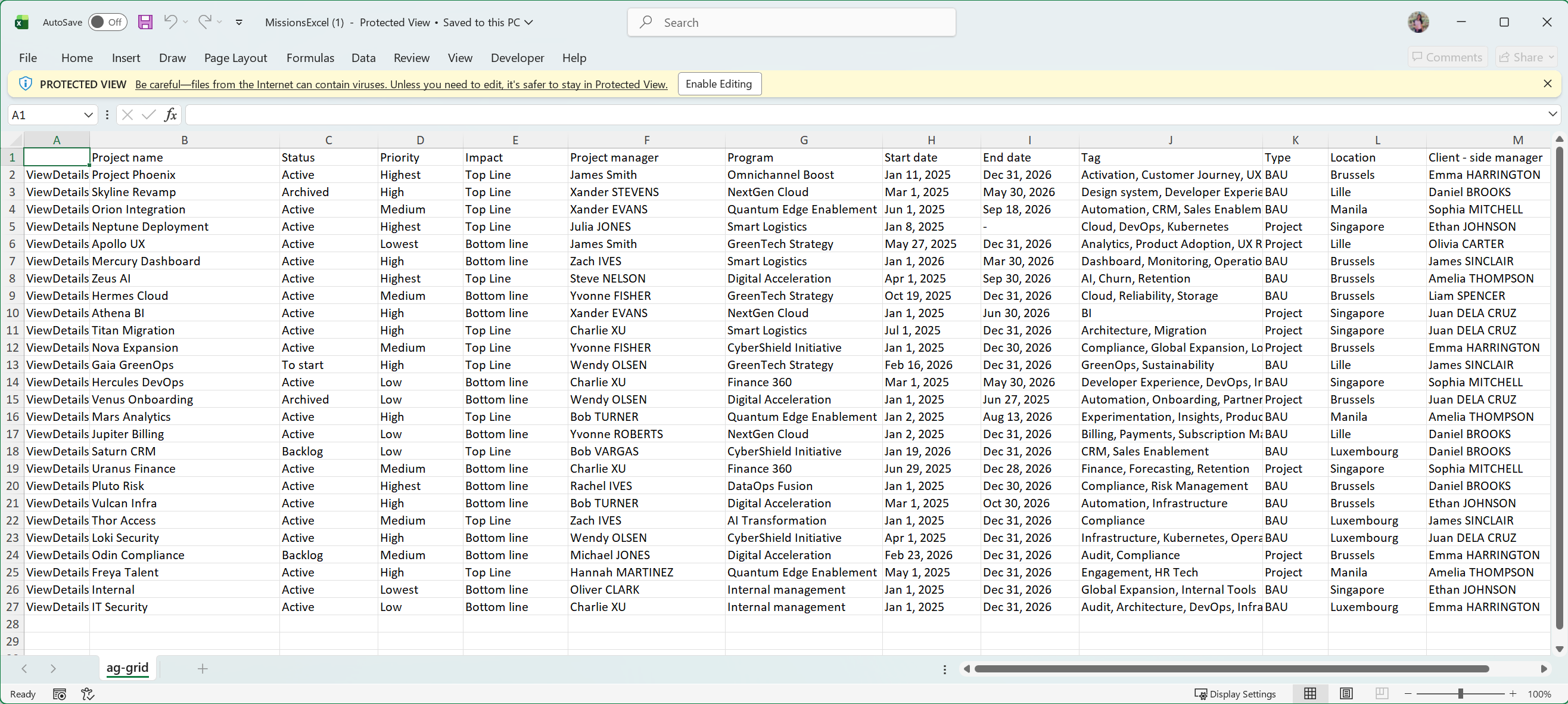 Open the file to review allocation data offline.