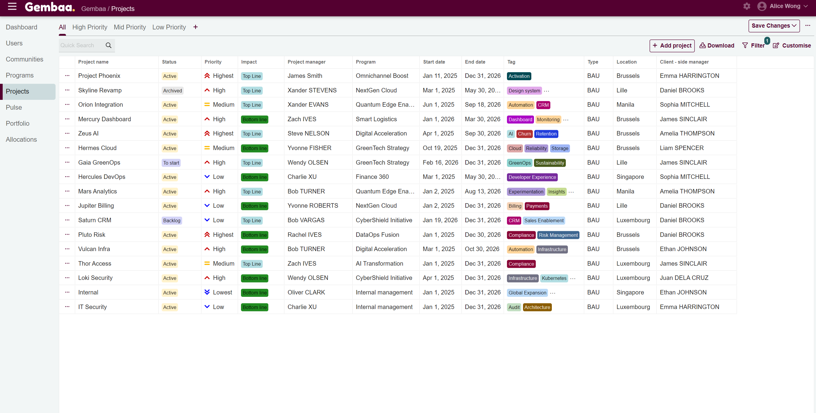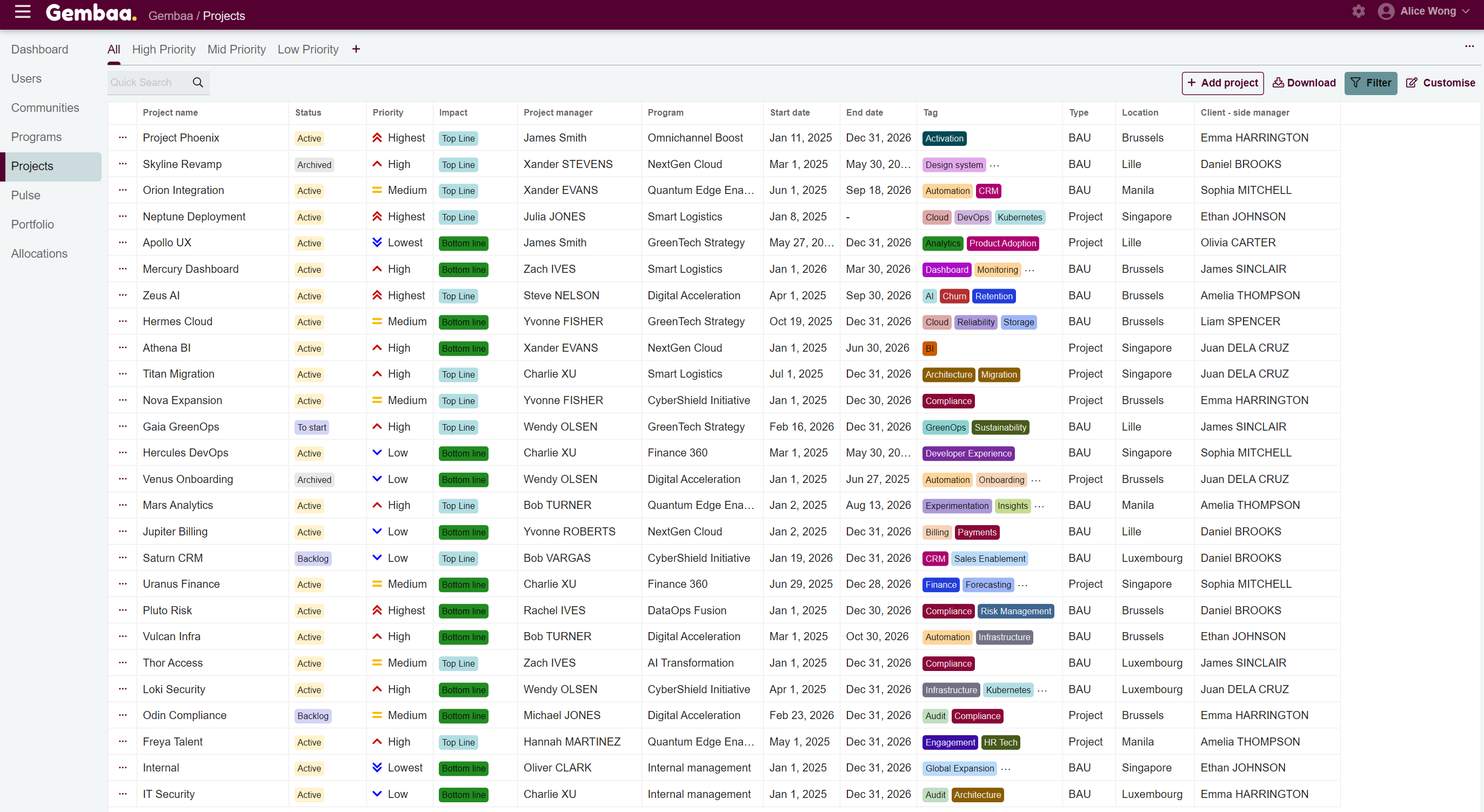 - Improve visibility and efficiency when managing many projects