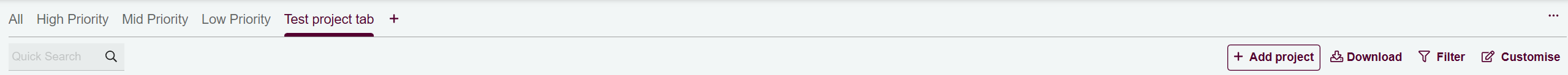 - Organize your Projects tablew view with custom tabs to quickly access frequently used filters and layouts